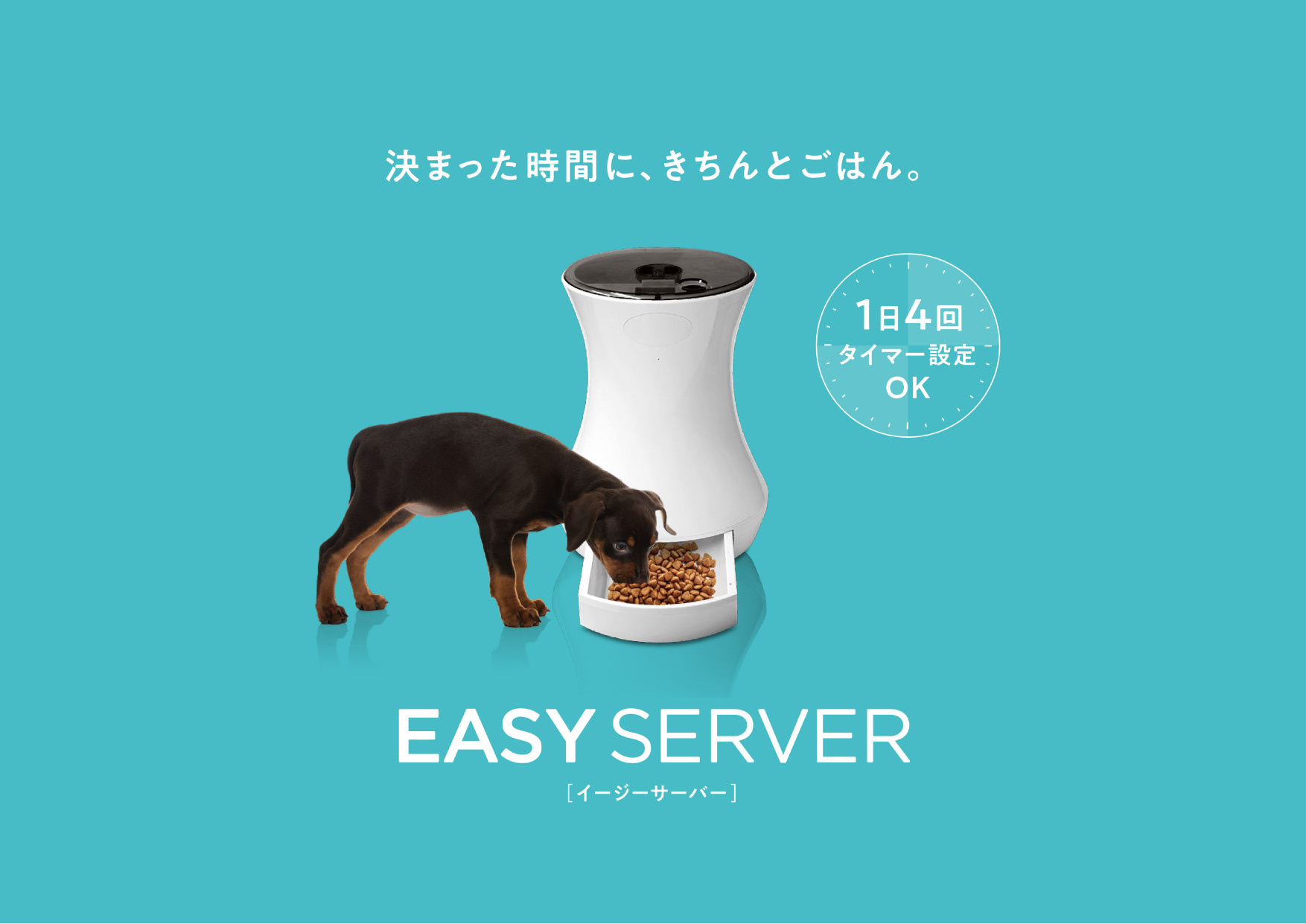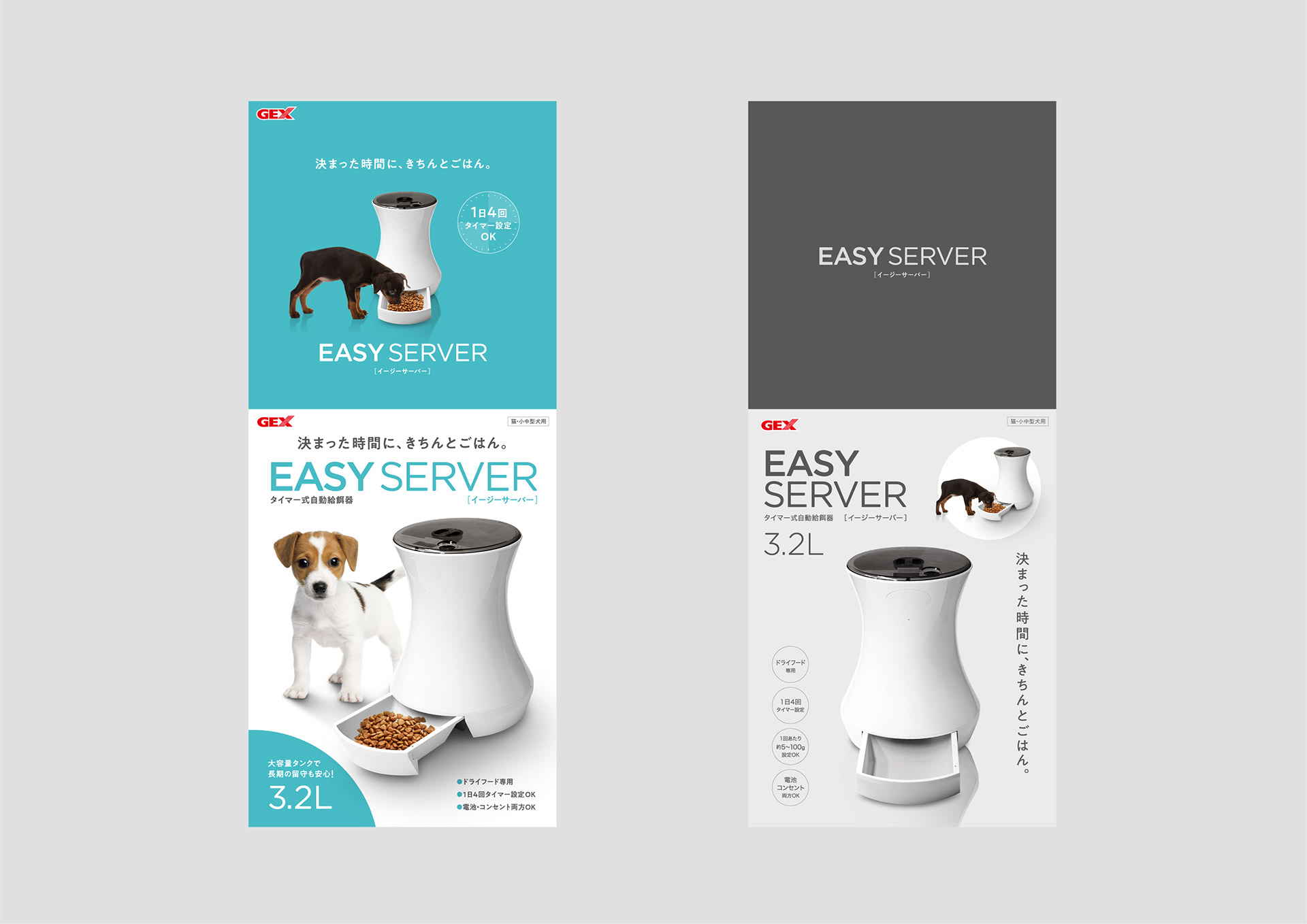 タイマー式自動給餌器 EASY SERVER のパッケージデザインです。
